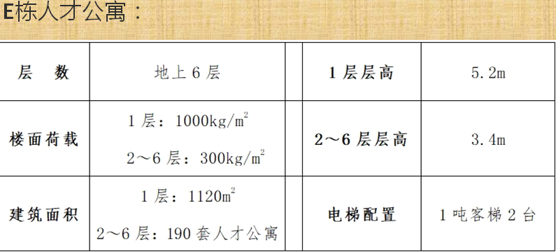 1層為生活配套用房,可用于超市、餐飲、咖啡廳等。 2 ~6層為人才公寓,共190套。       消防等級(jí)達(dá)到公寓標(biāo)準(zhǔn)。