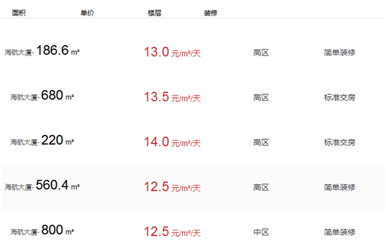 海航大廈辦公室出租及價格