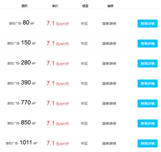港陸廣場辦公室出租及價(jià)格