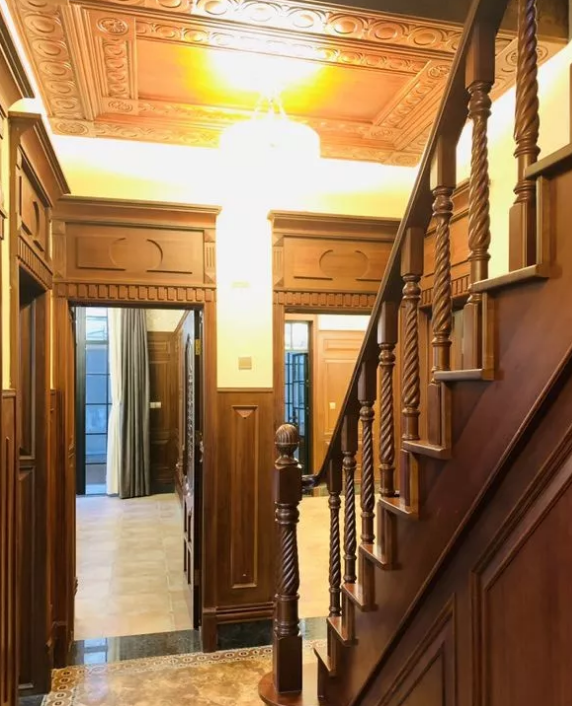 接待廳朝南設內陽臺,室內保留了原始壁爐及囪道;