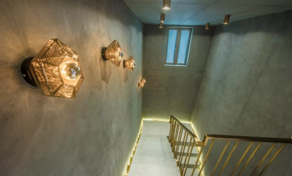 奢華卻并不艷俗的布置,色彩濃烈、現(xiàn)代工業(yè)風(fēng)格,而光線柔和的鐵藝吊燈,略帶復(fù)古氣息;