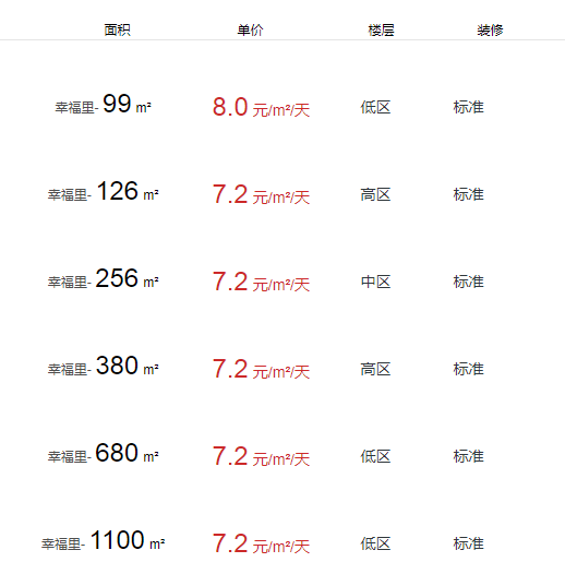 幸福里辦公室出租及租金