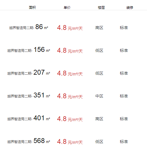 越界智造局二期辦公室出租及租金