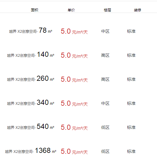 越界·X2創(chuàng)意空間辦公室出租及租金