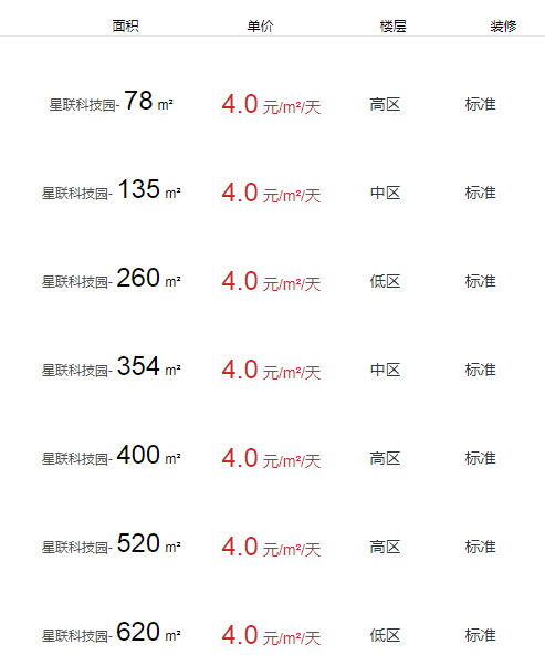 星聯(lián)科技園辦公室出租及租金