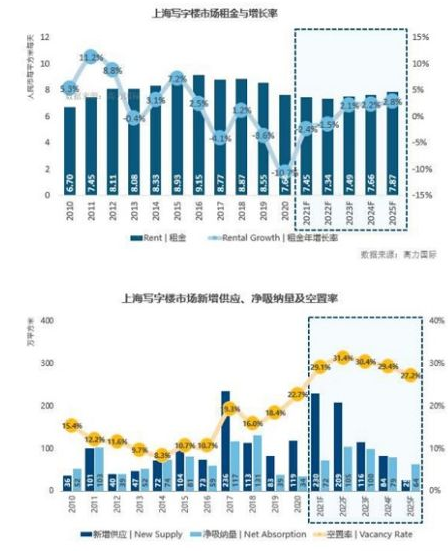 報告顯示,2021-22年上海寫字樓新增供應(yīng)將迎來高峰,年均有超過200萬平方米的新增供應(yīng)量入市,將使市場空置率進一步上揚,租金也將承受較大壓力,“以價換量”或?qū)⒊蔀槲磥韮赡贽k公樓租賃市場的主要策略。