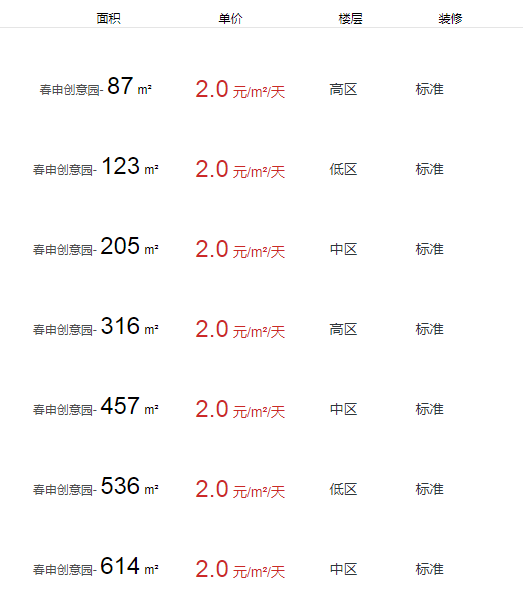 春申創(chuàng)意園辦公室出租及租金