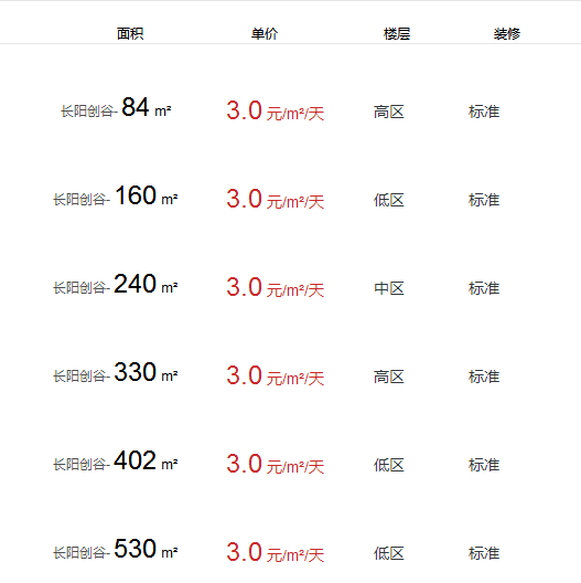 長陽創(chuàng)谷辦公室出租及租金