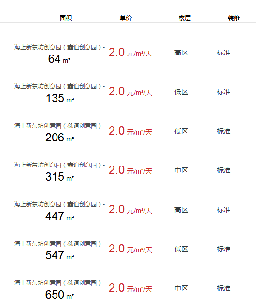 • 海上新東坊創(chuàng)意園(鑫誼創(chuàng)意園)辦公室出租及租金