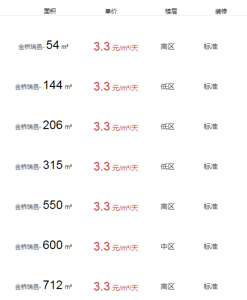 金橋瑞邑辦公室出租及租金