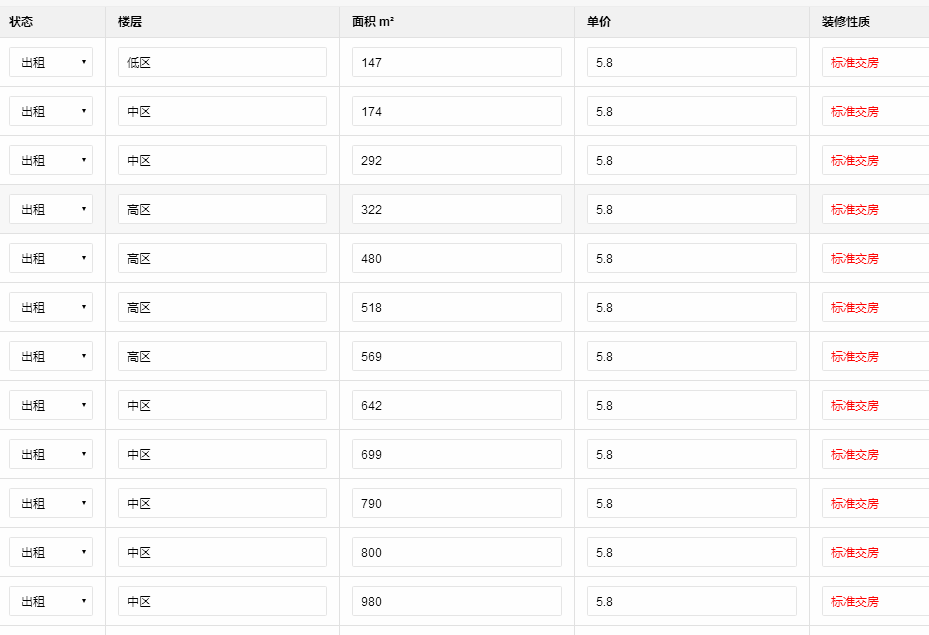 虹橋麗寶廣場租賃戶型: