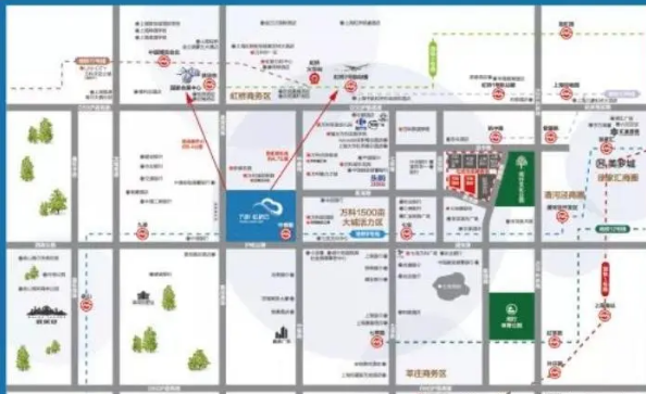 虹橋商務(wù)區(qū)地處長三角中心,虹橋機(jī)場(chǎng)、高鐵、國家會(huì)展中心等國家級(jí)配套環(huán)伺;距虹橋樞紐直線距離約4.7公里,距會(huì)展中心直線距離約5.4公里。