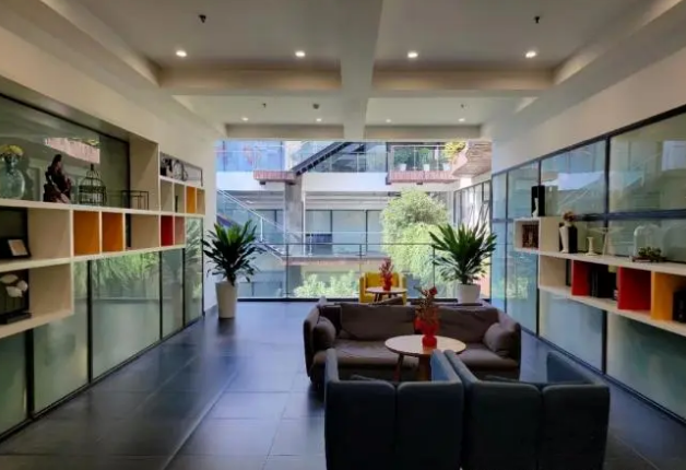 虹橋德必易園由A、B兩座相連樓宇組成,總面積25000平方米。1-4層為商業(yè)配套,5-8層為創(chuàng)意辦公區(qū)。在設計上,園區(qū)秉承《易經》簡與變的精神,為企業(yè)提供園林式生態(tài)辦公體驗。園區(qū)突破性地采用樓內中部鏤空的結構形式,在樓體內部開辟出一塊垂直花園,綠化垂直層疊而上,辦公其中猶如置身自然,既保證了辦公區(qū)域光線的通透感,又形成特有的生態(tài)圈。對于文化創(chuàng)意人群的原創(chuàng)精神,客戶可以在園區(qū)內自由發(fā)揮創(chuàng)意,營造個性化的辦公氛圍。