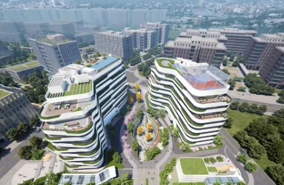 層層陽臺、屋頂泳池、屋頂籃球場、人才公寓、員工餐廳、品牌餐飲和多功能會議廳等配套比例高達(dá)35%,全業(yè)態(tài)配套功能,大大提升商務(wù)人士的時間效能