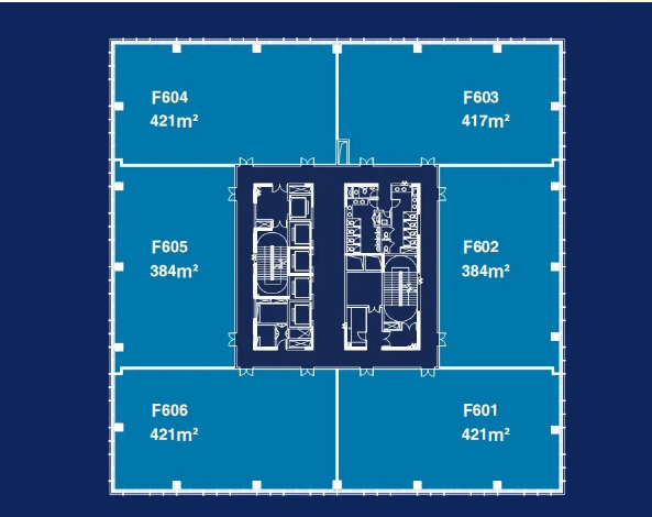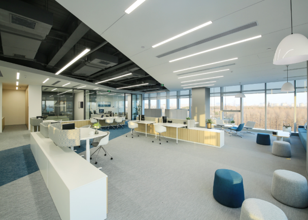 辦公空間:標準層面積約為2450㎡,得房率高達74%,層高約4.4米,配備約120mm架空地板,樓板承重不小于2.0KN/㎡。