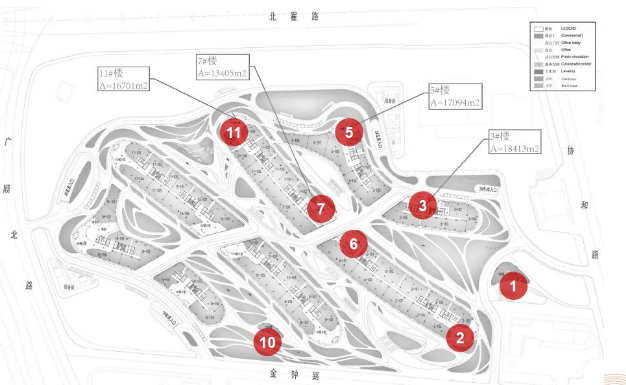 持有者:基匯資本持有其中的6棟寫字樓(2、3、5、6、7、11號(hào)樓)、商業(yè)下沉廣場(chǎng)及首層、兩棟獨(dú)棟商業(yè)辦公(1號(hào)、10號(hào)樓)。