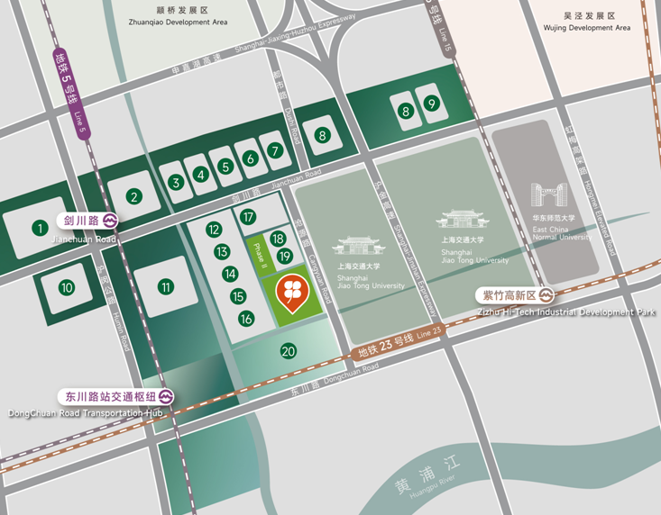 15號(hào)線近鄰紫竹高新區(qū)站,直連上海南站。